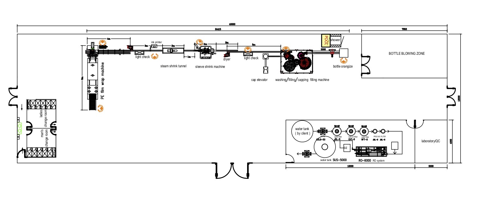 consist of three part: water treatment process, filling and pacakge part, match resin blowing machine.