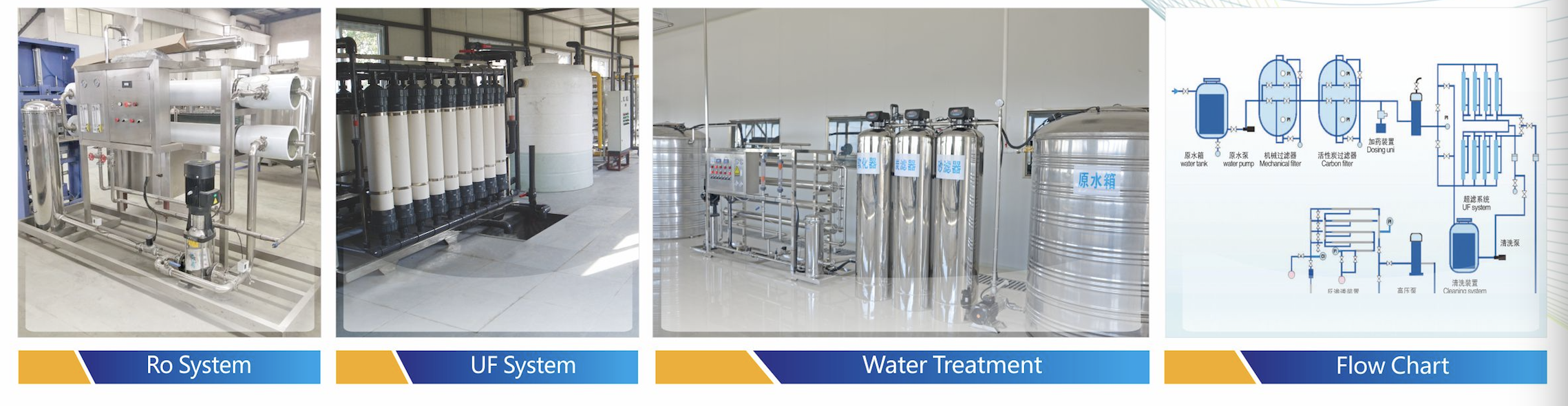 widely use for food line like dairy milk, drink water, beverage, fruit&coffee process, mainly by RO system and UF system, assemble with water tank, water pump, carbon filter, mechanical filter, fine filter, dosing unit, UV light, Ozone generator etc