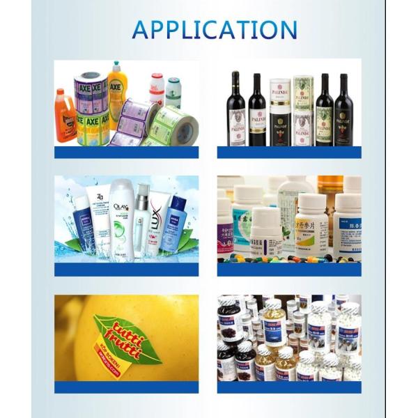 | Label material | Coated paper,Writing paper,Thermal Paper,Mirror coated paper | Food, drinks, cosmetics, chemical products, electronic products, etc |